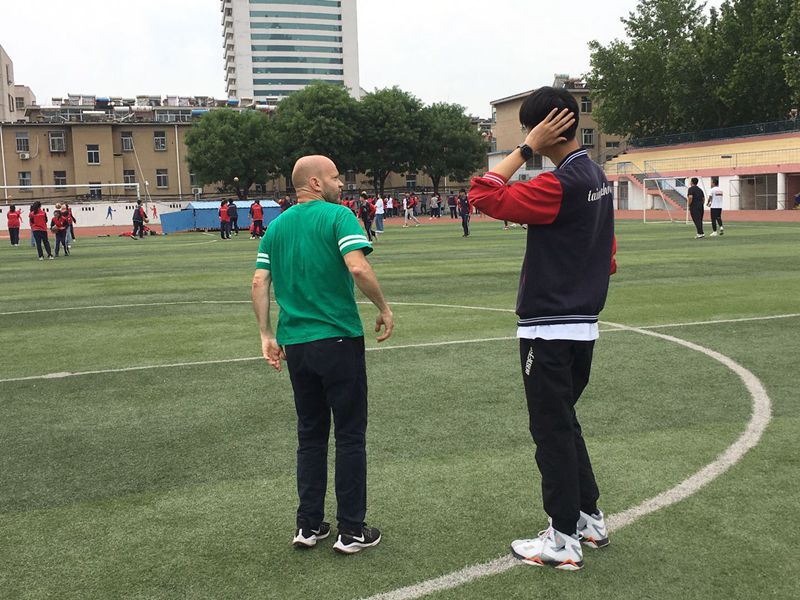 泰安一中外教教中美班学生学习橄榄球 |